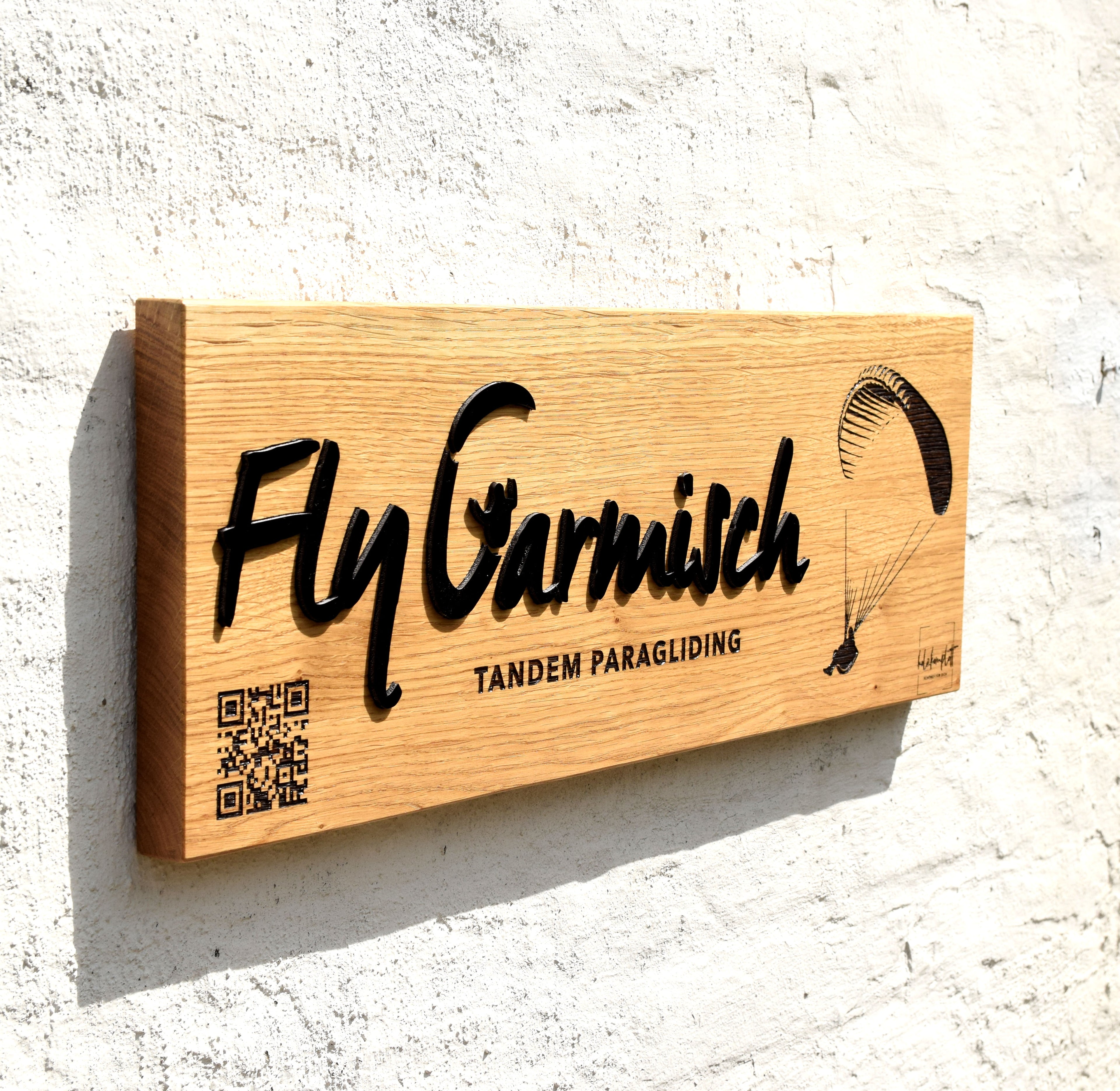 Eichenschild & schwarzes Acryl (57x20cm), Firmenlogo, Türschild personalisiert, Eingangsschild, Holzschild, Logo Firma Haustür.