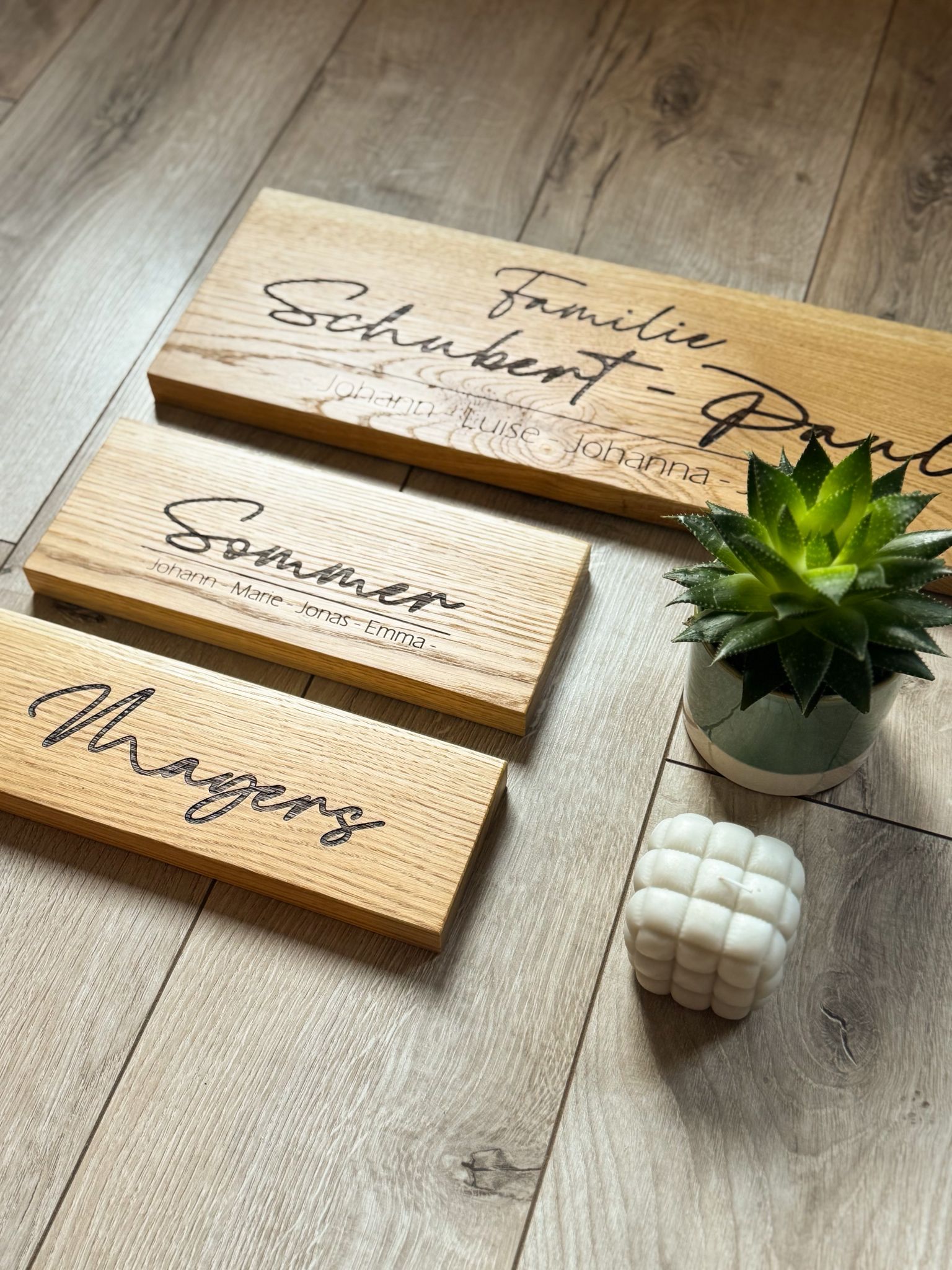 Eichenschild (40x12), Haustürschild, Willkommen, Türschild personalisiert, Eingangsschild, Eiche Holzschild, Namensschild Haustür.